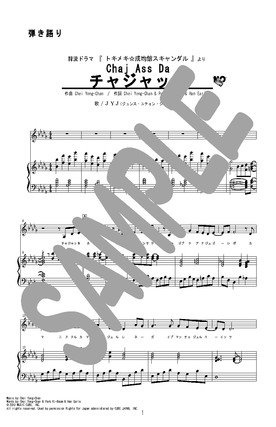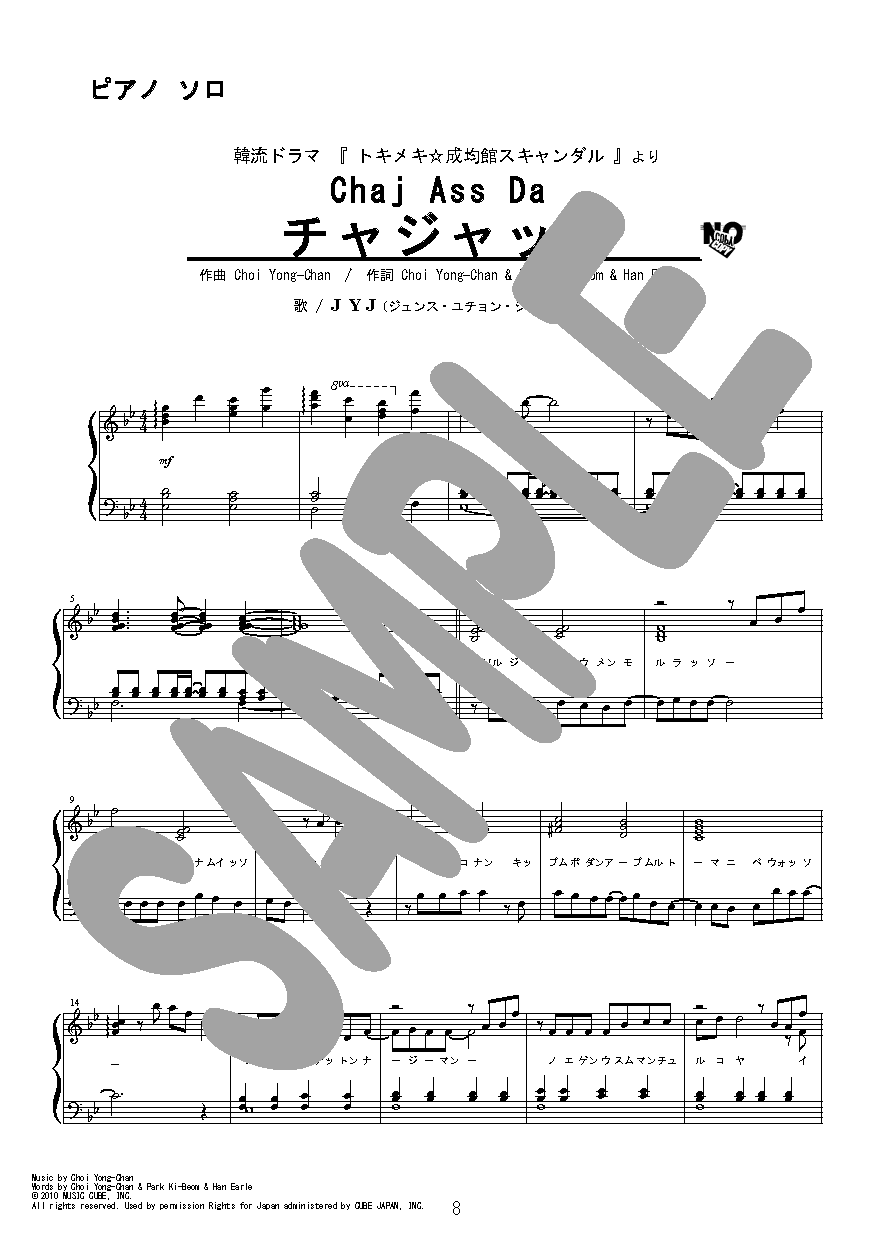 韓国ドラマ「トキメキ☆成均館スキャンダル」で使用されました。2010年東方神起から離脱した三人(ジュンス・ユチョン・ジェジュン)で結成されたグループ『JYJ』ユチョン初主演のドラマ曲です。甘く爽やかなラブソングをピアノソロと弾き語りで。ハングルの歌詞(カタカナ)付きです。